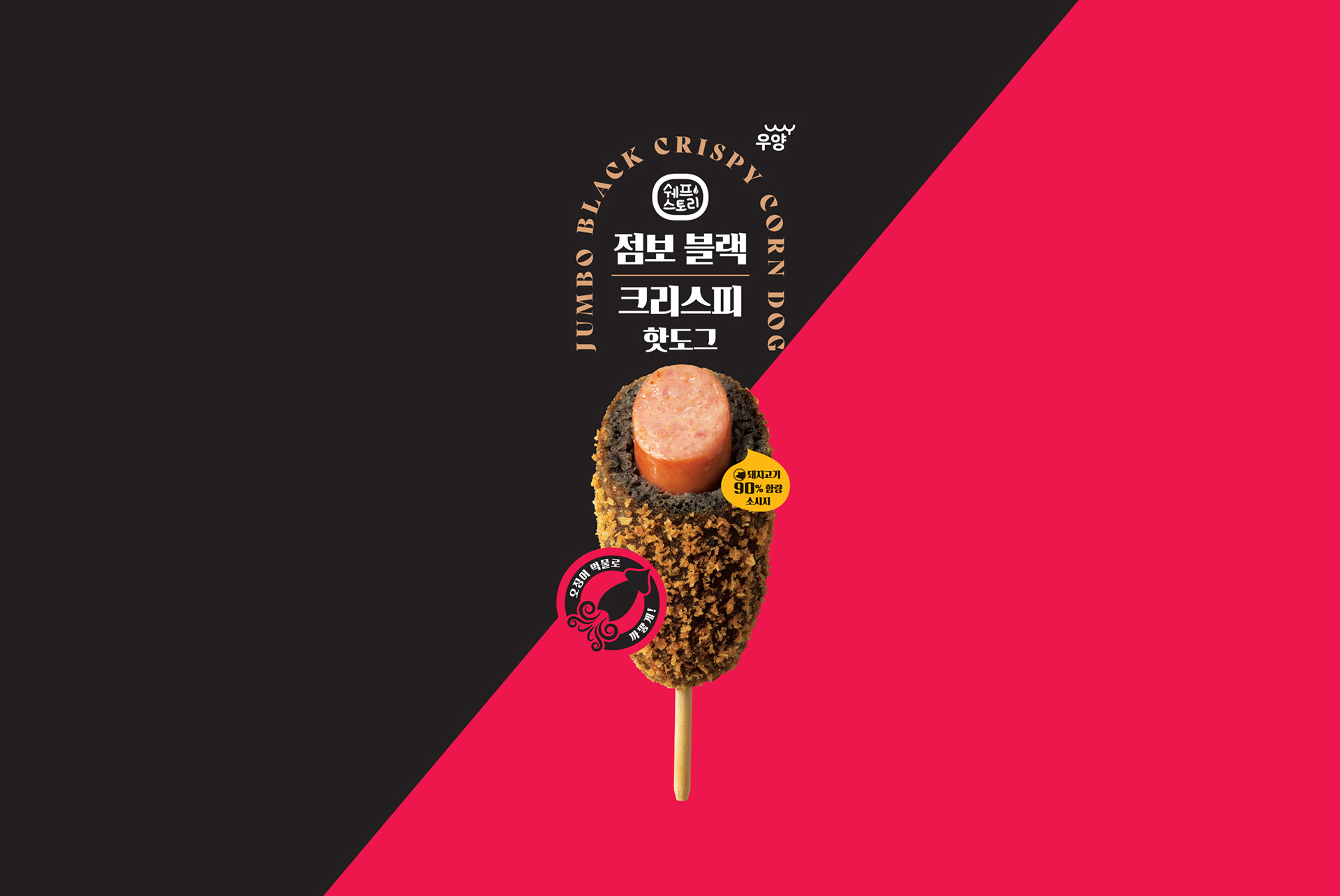 오징어 먹물이 함유된 블랙핫도그 제품입니다.