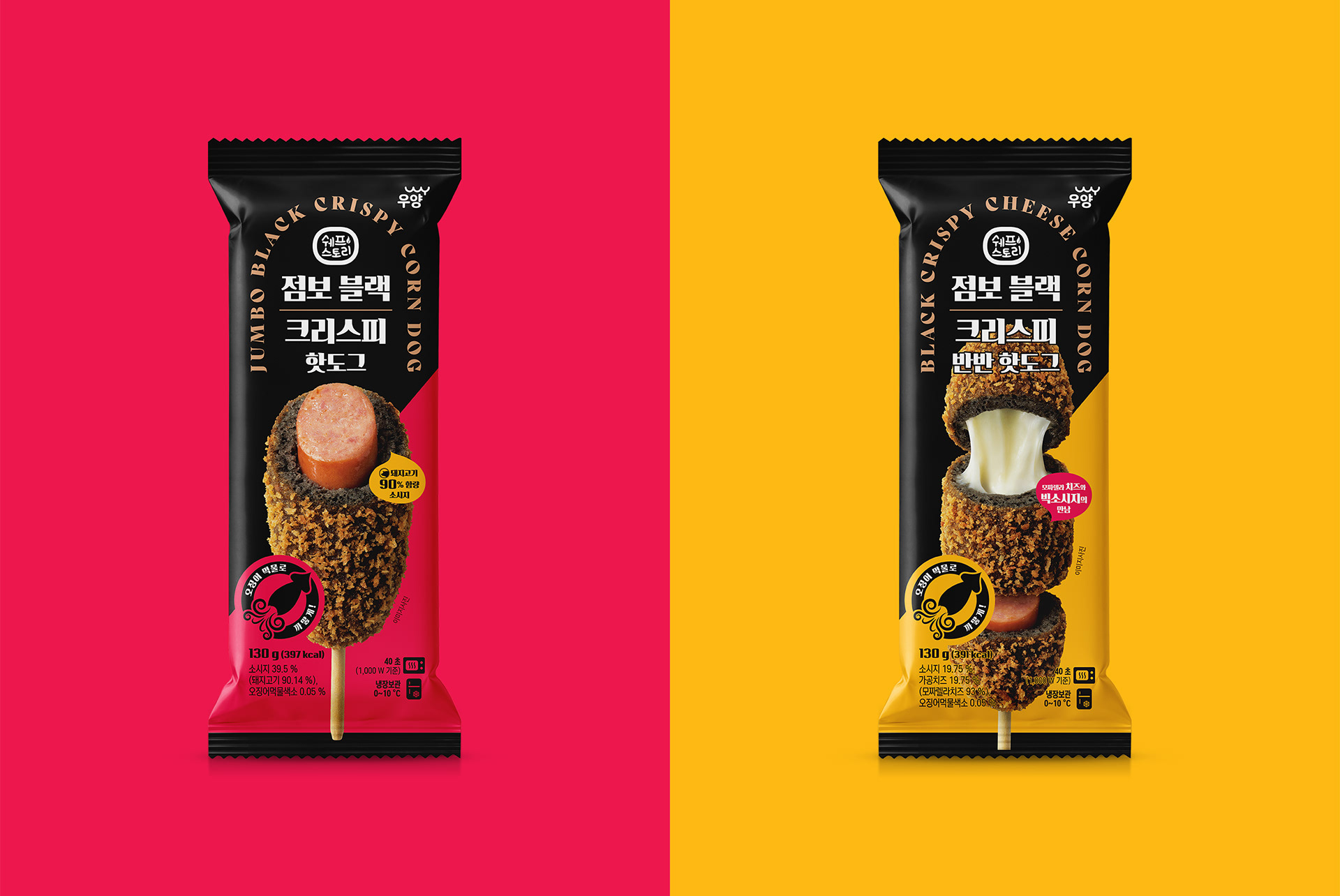 블랙컬러와 대비된 컬러를 사용하여 편의점 매대에서의 주목도를 높였습니다.