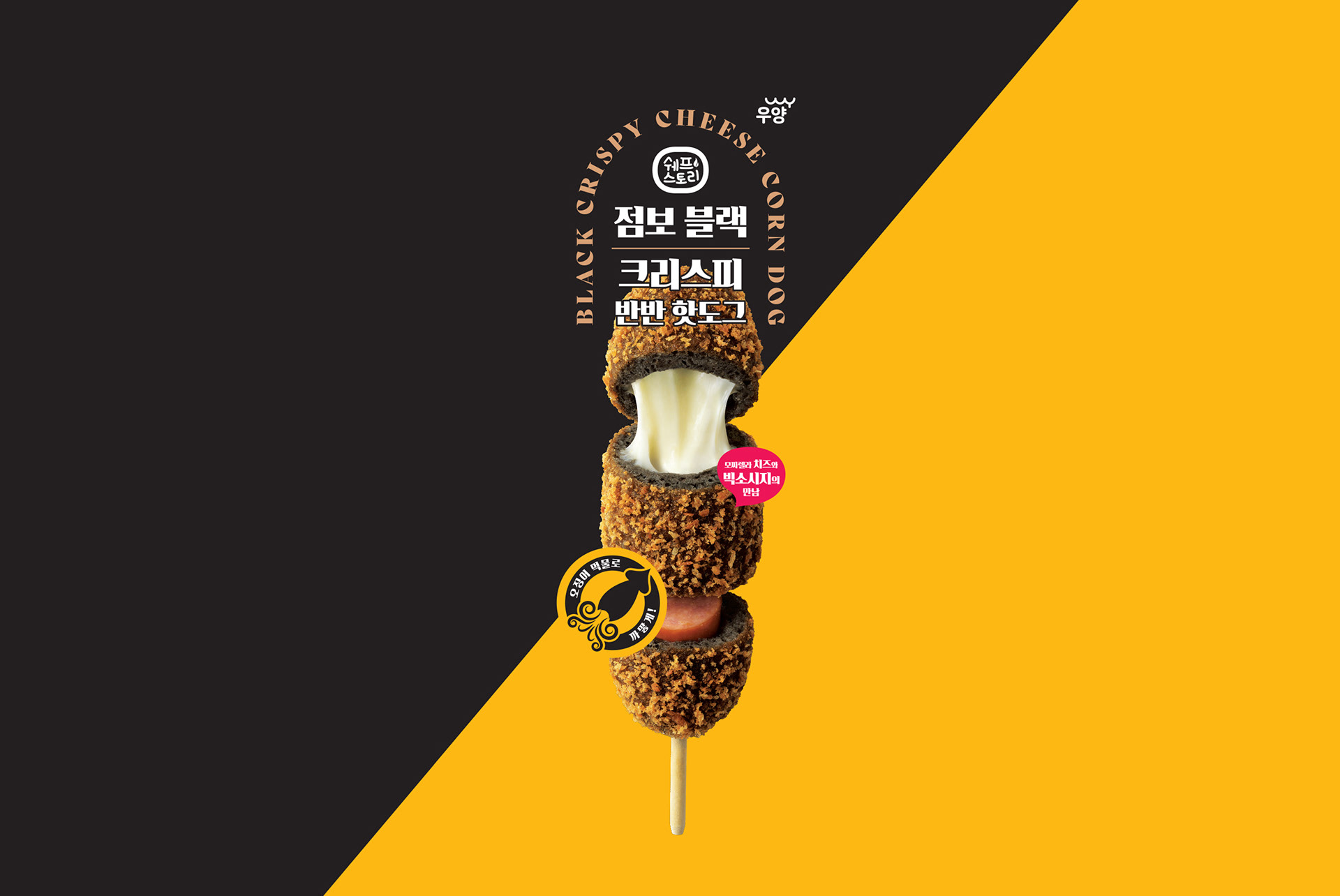 소시지와 치즈의 제품 원물을 극대화하기 위하여 이미지 리터칭을 진행하였습니다.