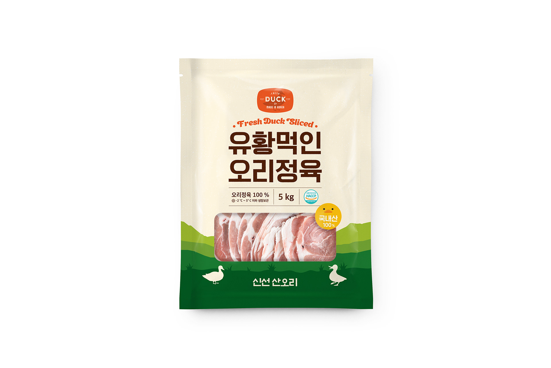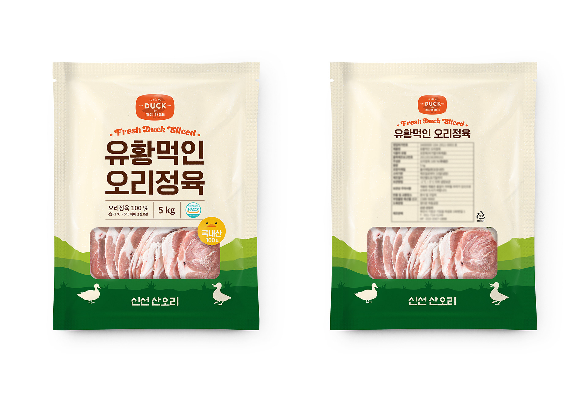 유황먹인 오리정육으로 자연방목에서 자란 오리를 그래픽 모티브로 디자인했습니다.