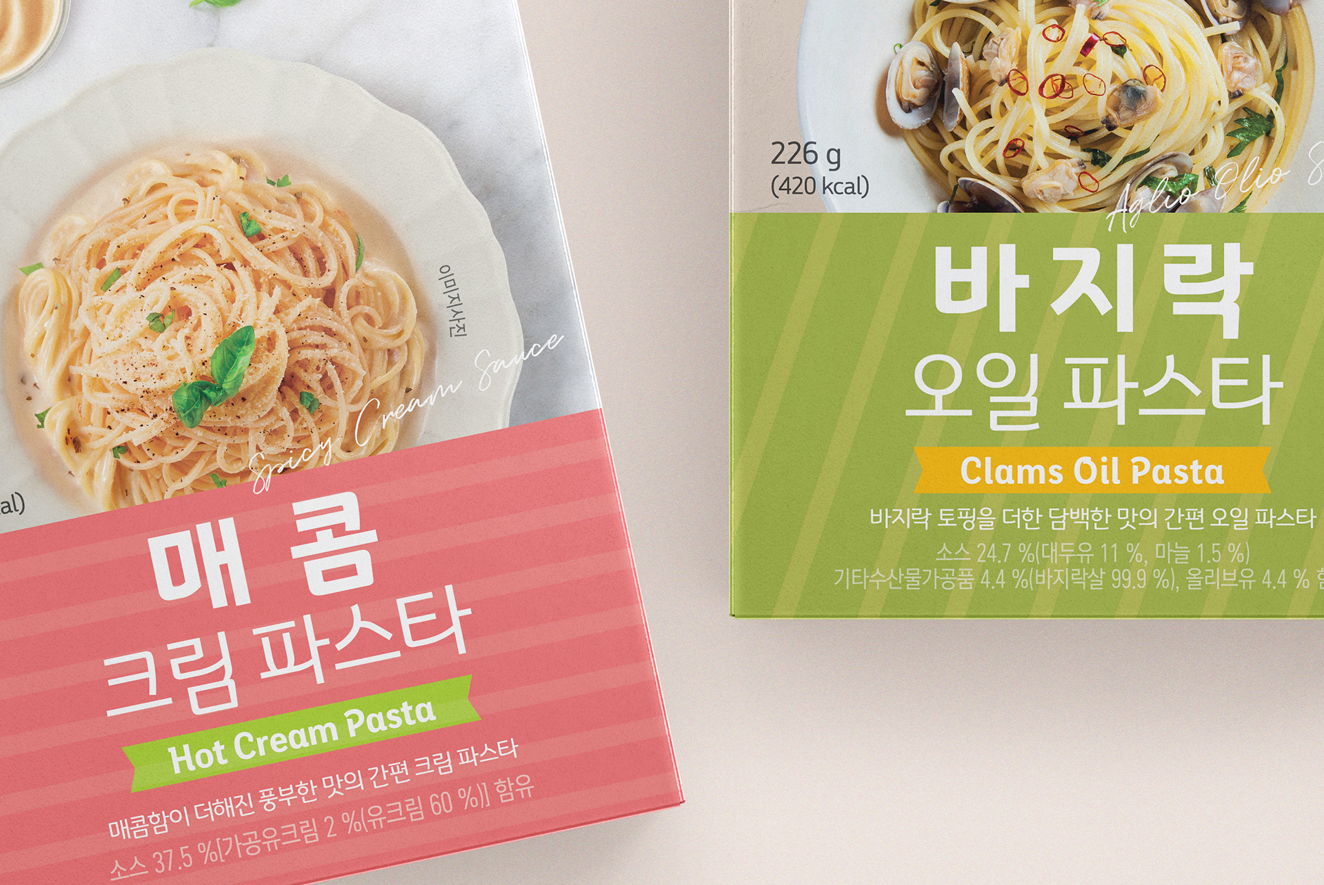 제품 원재료 컬러를 사용, 플레이버의 소스 사진을 이용하여 제품 속성을 부각 시켰습니다.